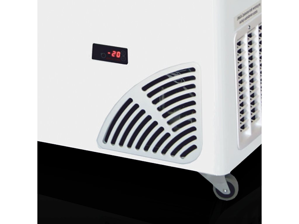 statické chladenie|vstavaný agregát|manuálne odmrazovanie|digitálny termostat s teplomerom|sila izolácie steny - 65 mm|biele opláštenie, vnútro ALU|koše sú súčasťou|zámok|kolieska