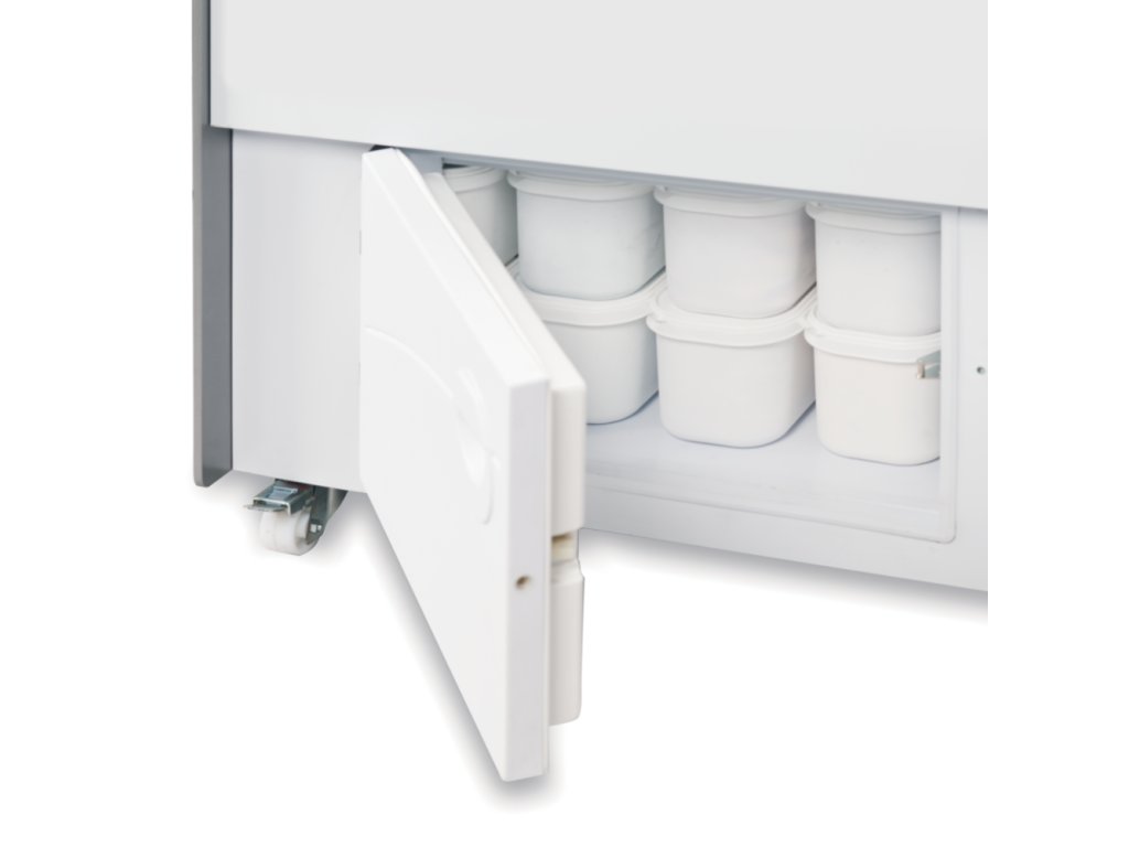 dobré rozloženie teploty, vyhrievané sklo zabraňujúce kondenzácii, vhodné pre gastronádoby "napoli" (nie sú súčasťou), vnútorné LED osvetlenie s vypínačom, digitálny termostat a zobrazenie teploty, ľahko prístupný úložný priestor, nočná roleta na udržanie teploty, ventilované chladenie, automatické odmrazovanie