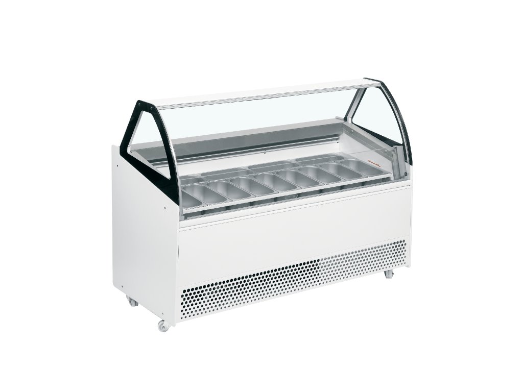 nízke predné sklo pre vysokú viditeľnosť|dobré rozloženie teploty|vyhrievané sklo zabraňujúce kondenzácii|vhodné pre 5l vaničky na zmrzlinu (nie sú súčasťou)|vnútorné LED osvetlenie s vypínačom|digitálny termostat a zobrazenie teploty|ľahko prístupný úložný priestor|nočná roleta na udržanie teploty|ventilované chladenie|automatické odmrazovanie