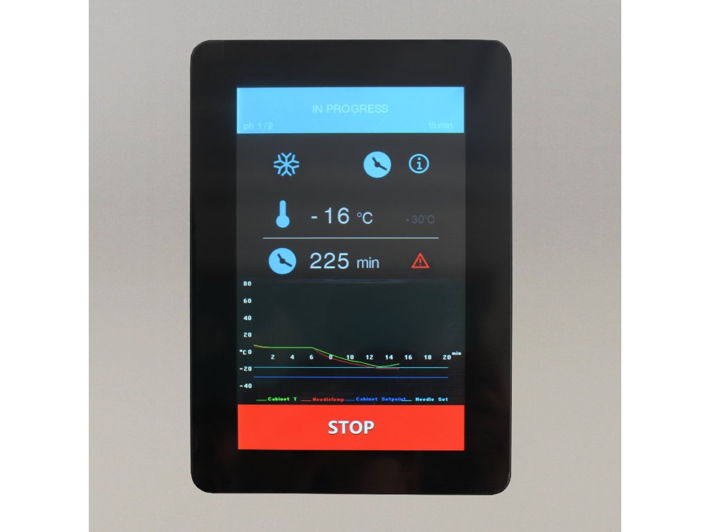 ovládač s dotykovou obrazovkou|programovateľný termostat|export dát v súlade s HACCP|nahrávanie alebo sťahovanie údajov cez USB|koľajnice na gastronádoby gn 1/1 a euronorm 600 x 400|nehrdzavejúca oceľ|vpichová sonda súčasťou|samozatváracie dvere, možno zmeniť otváranie|nastaviteľné nohy