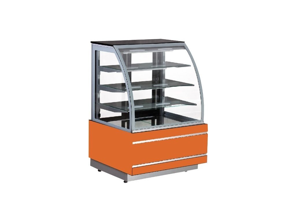 ventilované chladenie|vstavaný agregát|digitálny termostat|automatické odmrazovanie|zaoblené čelné sklo|čelné a bočné izolačné sklá|3 sklenené chladené police|vrchné LED osvetlenie a LED osvetlenie podstavca - farba biela teplá|nerezová chladená výstavná plocha|zadné posuvné dvere|farba svetelných profilov zlatá, strieborná alebo čierna