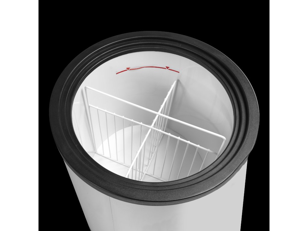 mraznička pre impulzívny predaj|rýchly pokles teploty|vhodné na propagáciu|systém deliacich prepážok|výklopné veko|pevné kolieska