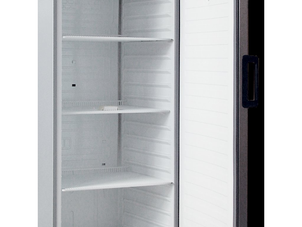jednodverová chladiaca skriňa|ukazovateľ teploty na hornej lište dverí|zámok|termostat|automatické odmrazovanie|5 roštov|osvetlenie chladiaceho priestoru|zadné kolieska|ventilované chladenie