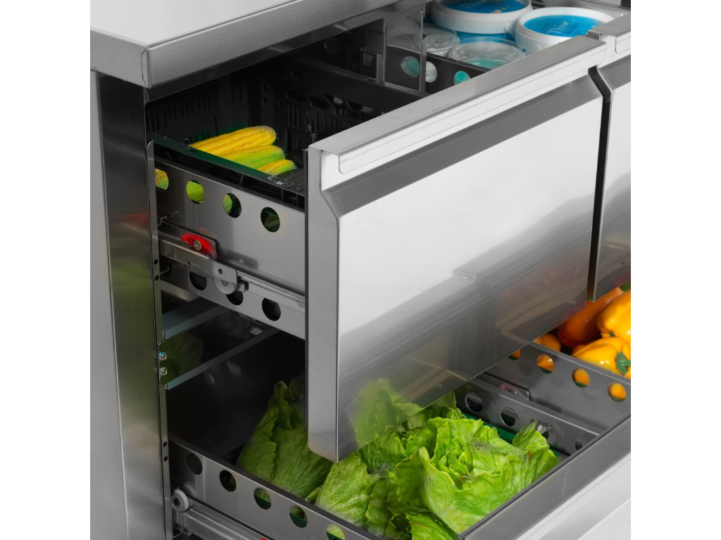Rad chladiacich stolov CK-X z nehrdzavejúcej ocele SS304 je vyrobený pre profesionálne kuchyne, a preto má rozmery GN1/1. Stoly sú k dispozícii v niekoľkých veľkostiach a môžete si vybrať medzi modelmi s pracovnou doskou so zadným lemom alebo bez neho. Všetky sú vybavené ventilovaným chladením na zaistenie rovnomernej a stabilnej teploty. Ovládač disponuje funkciou Bluetooth pre jednoduché monitorovanie prostredníctvom aplikácie - Applica nebo Controlla.