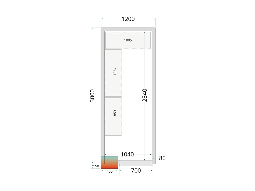 | Vonkajšie rozmery (ŠxHxV): | 1200 x 3000 x 2200 mm |