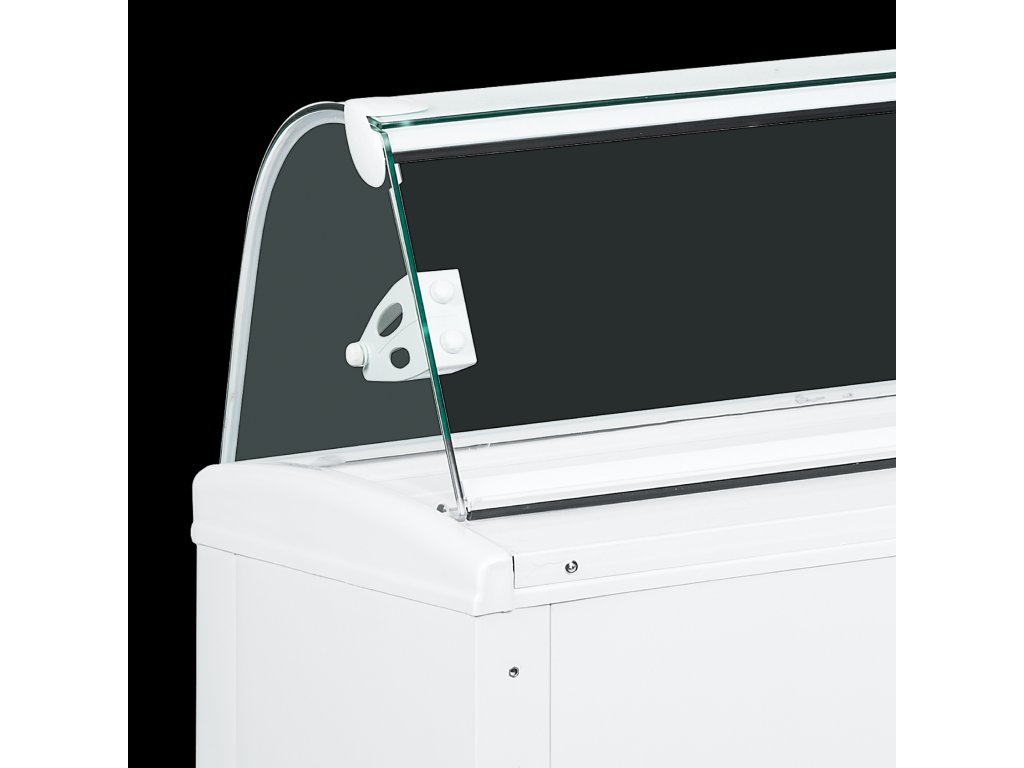 plne automatická prevádzka|ventilované chladenie|oblé predné sklo|vnútorné LED osvetlenie s vypínačom|digitálny termostat a zobrazenie teploty|výklopné zadné krytie|vhodné pre 5l vaničky na zmrzlinu (nie sú súčasťou)|kolieska
