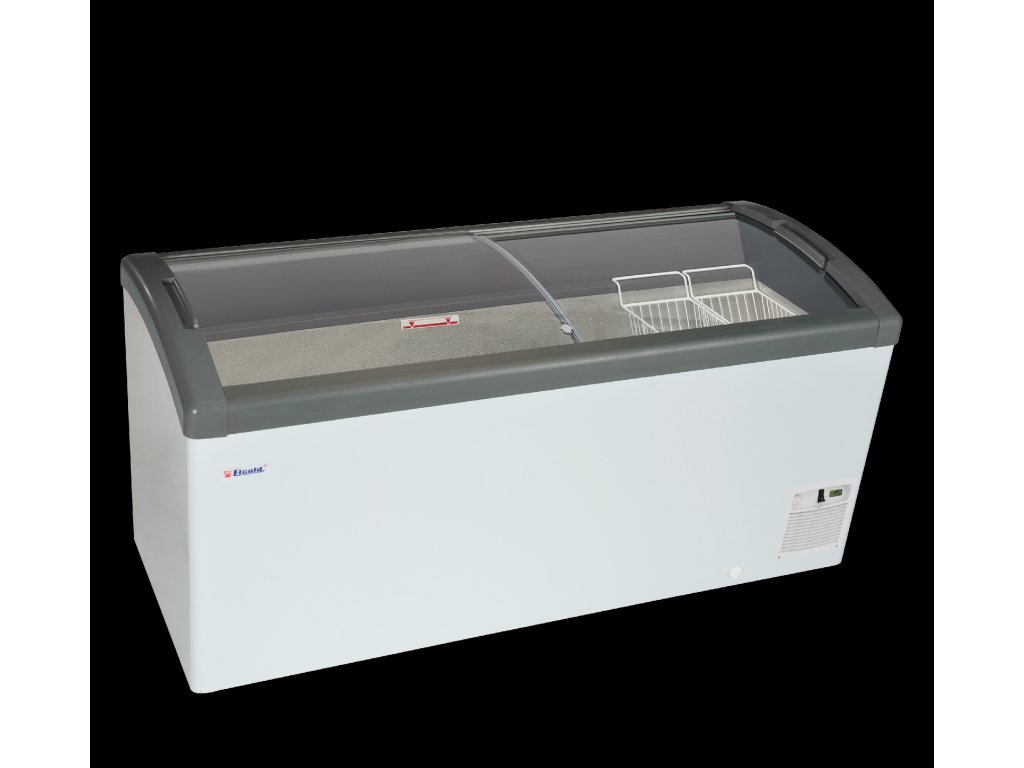 bezrámové presklené posuvné veká|vnútorné LED osvetlenie s vypínačom|statické chladenie|kolieska|odtok vody pri odmrazovaní|kondenzátor s pomocným ventilátorom na úsporu energie|možnosti s červeným a modrým lemovaním na objednávku