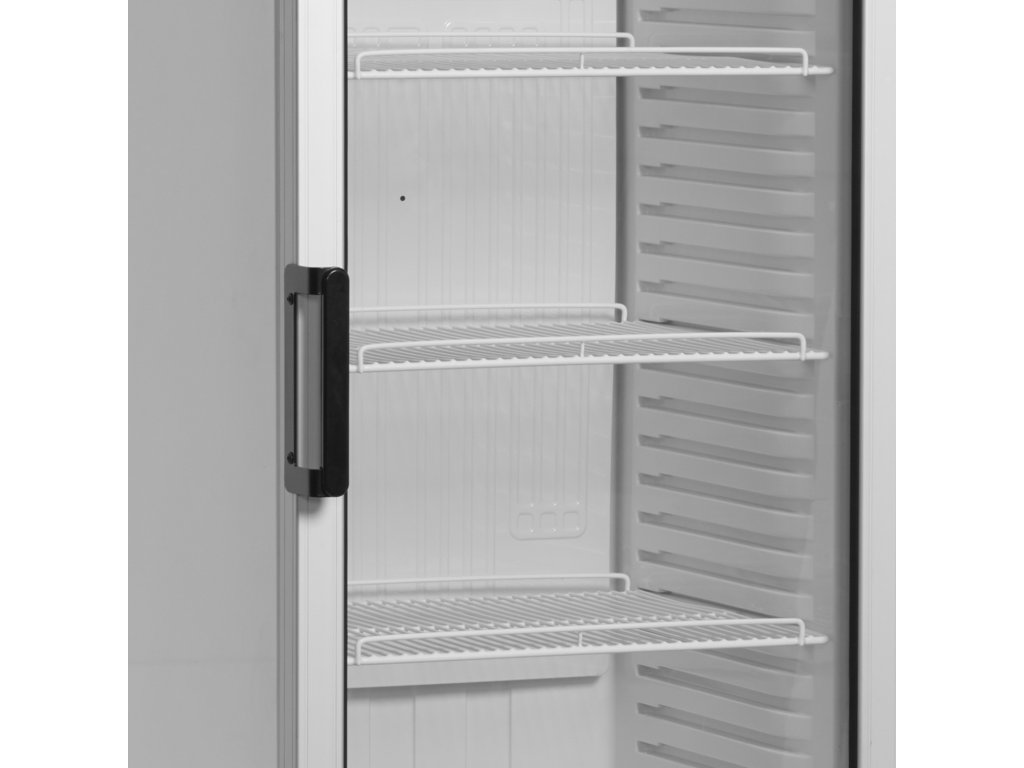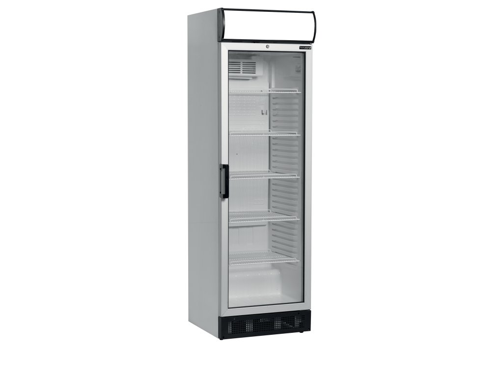 Rad 1-dverových chladiacich skríň s presklenými dverami FSC ponúka excelentnú kvalitu konštrukcie za konkurencieschopnú cenu. Skriňa je biela so sivými presklenými dverami s hliníkovým rámom. Je ideálna na prezentáciu produktov a vďaka osvetlenej reklamnej nadstavbe v hornej časti určite zaujme pozornosť zákazníkov. Získate skvelú prezentáciu výrobkov v kombinácii s výkonným chladiacim systémom s ventilátorom a nastaviteľné police vám dodajú flexibilitu. Mnohé modely sú k dispozícii aj bez nadstavby (rad FS).