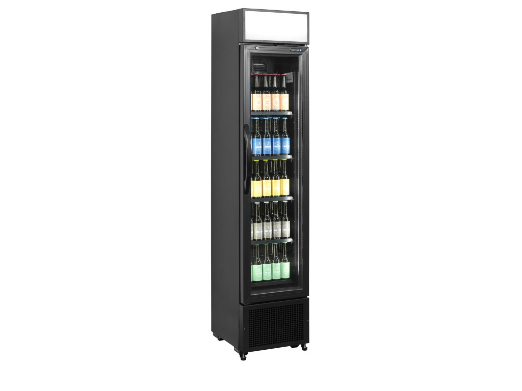 Rad FSC Slim ponúka excelentnú kvalitu konštrukcie za konkurencieschopnú cenu. Štíhly model má presklené dvere a je k dispozícii v bielej alebo čiernej farbe. Vaše výrobky získajú skvelú prezentáciu v kombinácii s výkonným chladiacim systémom a nastaviteľné police vám dodajú flexibilitu. Chladiaca skriňa s presklenými dverami je ideálna na prezentáciu značiek a vďaka osvetlenej reklamnej nadstavbe v hornej časti určite zaujme pozornosť zákazníkov.