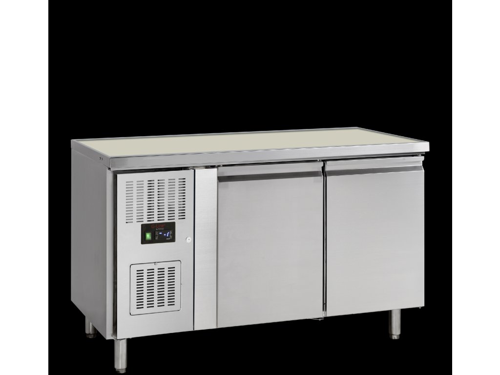 Tieto mraziace nerezové stoly sa dodávajú štandardne bez dosky, ktorú je možné dokúpiť na objednávku s lemom alebo bez lemu. Agregát je tiež možné zvoliť na pravej alebo ľavej strane. Stôl má samozatváracie dvere. Tieto stoly sú k dispozícii aj v chladiacej verzii.