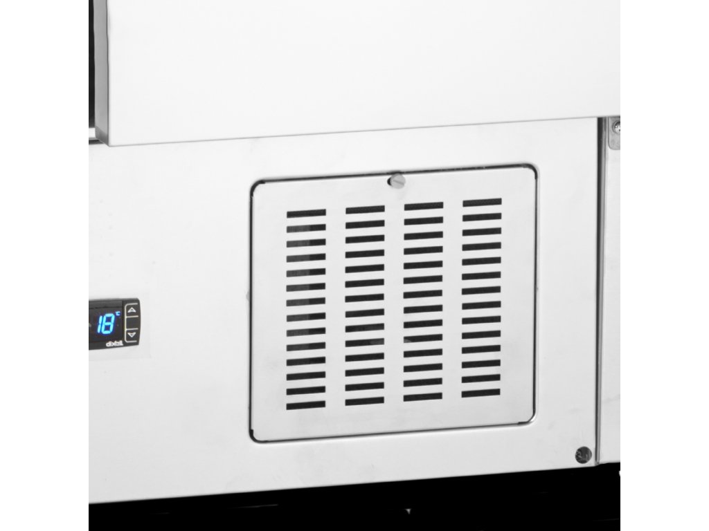 preverená kvalita za priaznivú cenu|polypropylénová krájacia doska|vhodné pre gastronádoby gn (nie sú súčasťou)|automatické odmrazovanie|nastaviteľné police GN 1/1|nastaviteľné nožičky|nerezové prevedenie|chladenie s pomocným ventilátorom