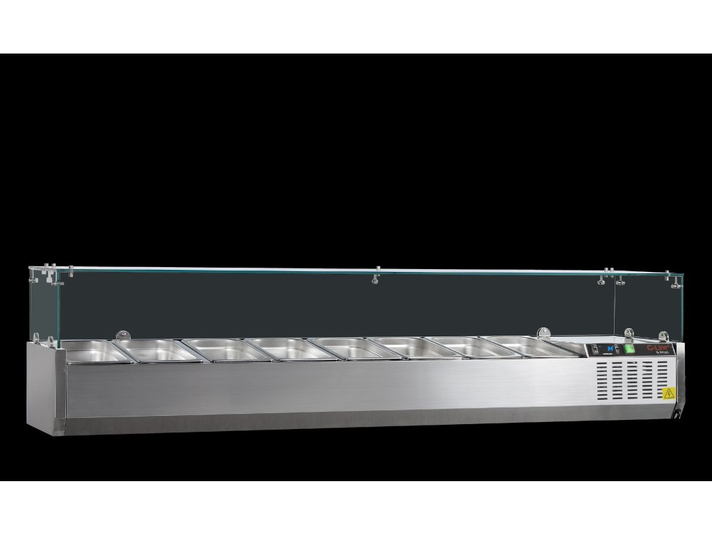 Chladiaca nadstavba na gastronádoby GN 1/4 vhodná pre pizzerie, rýchle občerstvenia či menšie prevádzky. Gastronádoby nie sú súčasťou.