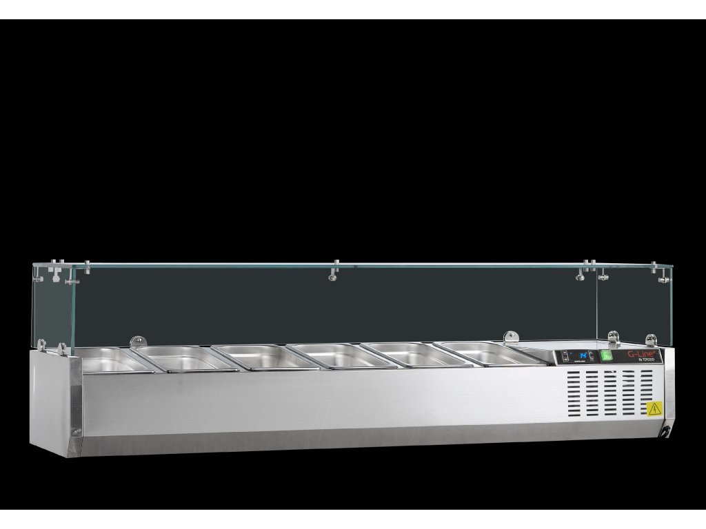 The GVC38 range of vitrine coolers is a great addition to gastro counters, as it enables you to have everything you need for food preparation within reach. It accepts GN1/3, GN1/6 and GN1/2 pans (not included). The cooler is made in SS201 stainless steel with a glass sneezeguard to protect the food. Ideal for pizza places, fast food restaurants, and sandwich shops.