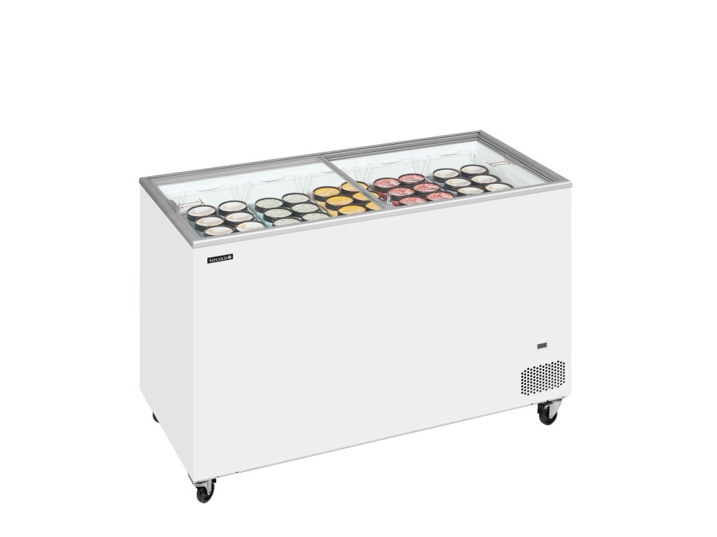 Štandardná séria pultových mrazničiek IC ponúka stabilné a pevné zariadenie za zaujímavú cenu. Je skvelou voľbou pre začínajúce spoločnosti, sezónny predaj atď. Má rovné, presklené, posuvné veká pre viditeľnosť produktov a kompletnú súpravu košov, ktoré hneď môžete naplniť napríklad chutnou zmrzlinou a nanukmi. Pevné a odolné kolieska sú pripravené na jednoduché premiestňovanie mrazničky.