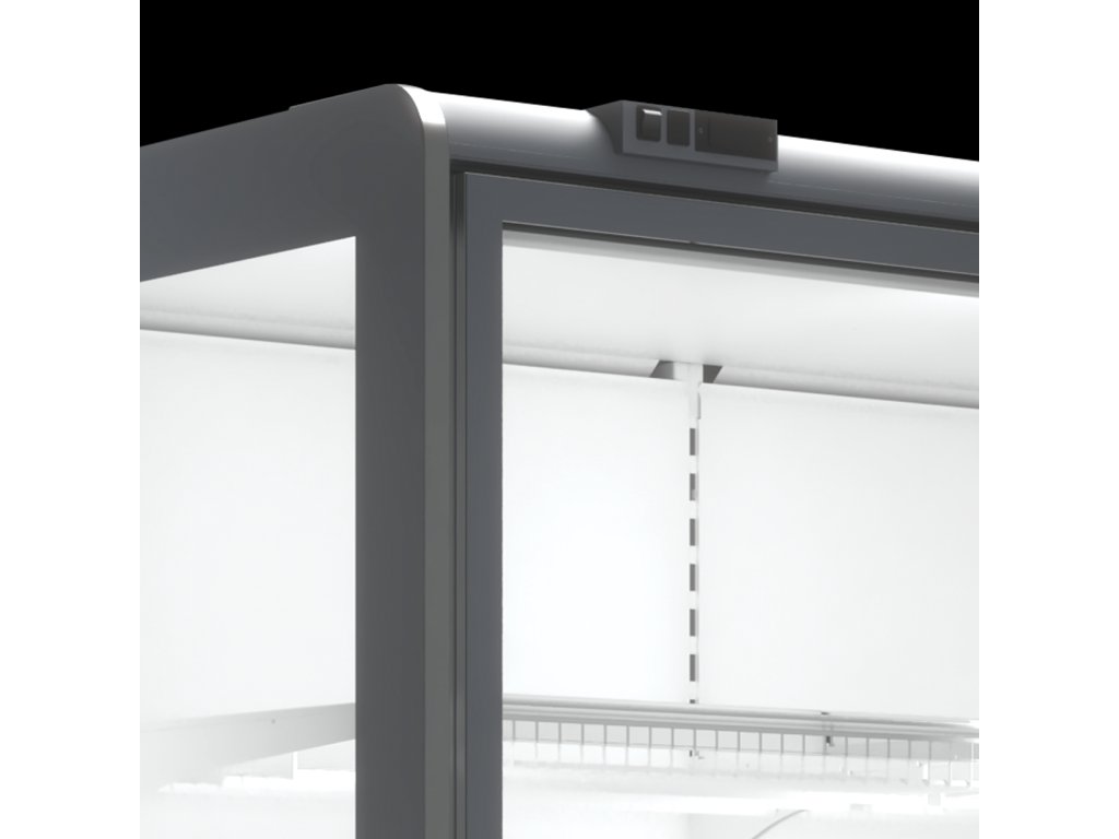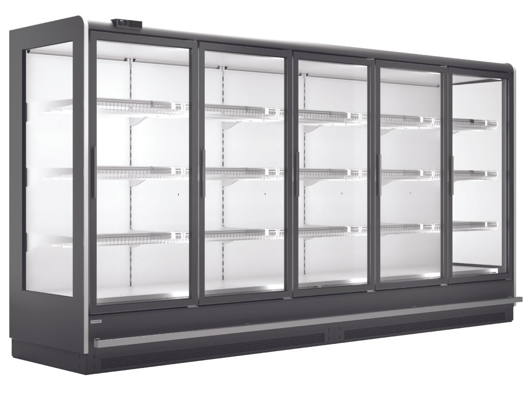 ventilované chladenie|bez vstavaného agregátu|verzia mraziaca|presklené krídlové dvere|digitálny termostat|nástrekový ventil - možnosť chladiv R452A, R448A, R449A|automatické odmrazovanie|presklené bočnice|3 rady roštových polic|cenovkové lišty|odmrazovacia tyč na výparníku|možnosť spájania do zostáv - bočnice 3 cm|vertikálne LED osvetlenie