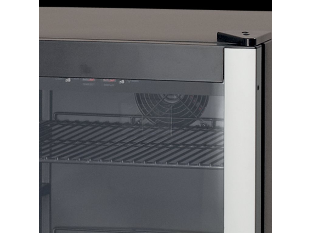 Táto jednodverová chladiaca skriňa s presklenými dverami a ventilovaným chladením je ideálna pre prezentáciu chladeného tovaru v predajniach a obchodoch. Skriňa má tri výškovo nastaviteľné rošty, takže sa ľahko prispôsobí rôznym veľkostiam nápojov a typom potravín. Vďaka preskleným dverám a ventilovanému chladeniu je zaistená optimálna viditeľnosť a prúdenie vzduchu, čo pomáha udržiavať konštantnú teplotu v celej skrini. S čiernym interiérom a exteriérom je táto skriňa moderná a elegantná, čo ju robí vhodnou nielen pre gastronomické prevádzky, ale aj pre obchody s potravinami a nápojmi.