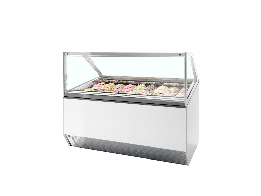 vynikajúca viditeľnosť výrobkov|rovné predné sklo|vhodné pre 5l vaničky na zmrzlinu (nie sú súčasťou)|vnútorné LED osvetlenie s vypínačom|digitálny termostat a zobrazenie teploty|predné presklené krídlové dvere (na vyžiadanie)|dvojité izolačné sklo po stranách|vyhrievané sklo zabraňujúce kondenzácii|zadné posuvné sklenené dvere