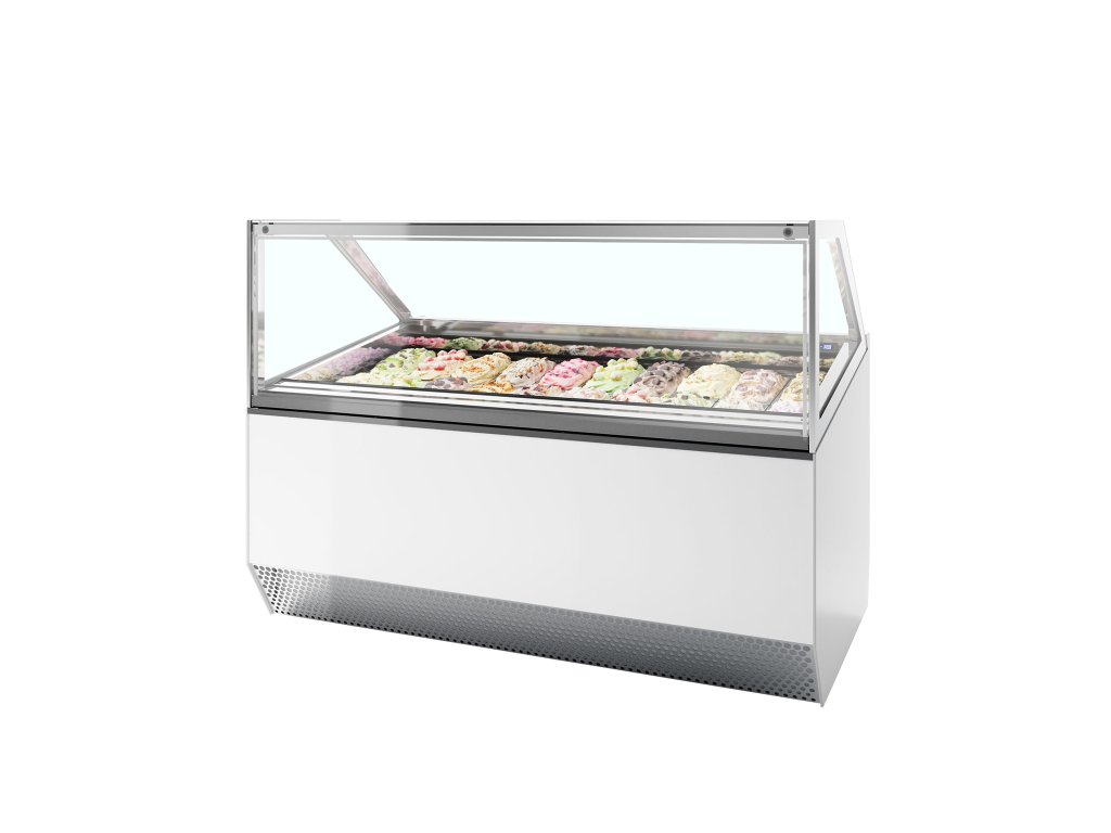 vynikajúca viditeľnosť výrobkov|rovné predné sklo|vhodné pre 5l vaničky na zmrzlinu (nie sú súčasťou)|vnútorné LED osvetlenie s vypínačom|digitálny termostat a zobrazenie teploty|predné presklené krídlové dvere (na vyžiadanie)|dvojité izolačné sklo po stranách|vyhrievané sklo zabraňujúce kondenzácii|zadné posuvné sklenené dvere