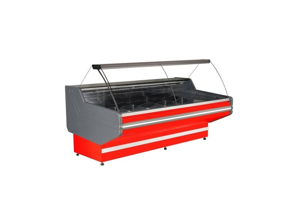 ventilované chladenie|vstavaný agregát|digitálny termostat|automatické odmrazovanie|odmrazovacia tyč pod výparníkom|vyhrievané čelné sklo|vnútorná sklenená clona proti zahmlievaniu|LED osvetlenie vitríny farba ružová (na mäso)|nerezová výstavná plocha|nerezový úložný priestor|nerezová odkladacia doska|bočnice ABS|zadné plexi krytie|zásuvka 230 V / 50 Hz