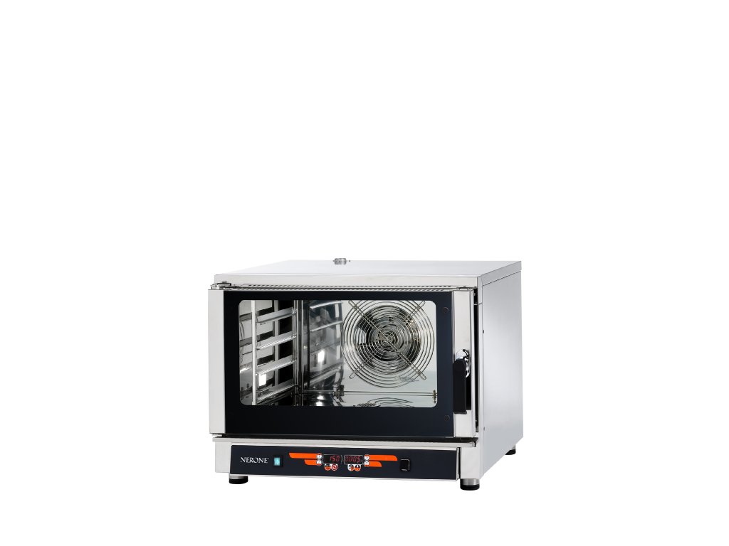 Digitálna konvekčná (teplovzdušná) pec s privlhčovaním a reguláciou pary 10 až 100 %. Vďaka pare nedochádza k vysúšaniu produktov, je zachovaná ich šťavnatosť. Pri pečení pečiva má para vplyv na rovnomernú štruktúru a následne jeho kvalitu. V sérii NORDline Nerone MID je počet roštov (600 x 400 mm) alebo GN 1/1 daný číslom v názve za "MID". Rošty ani GN nie sú súčasťou.