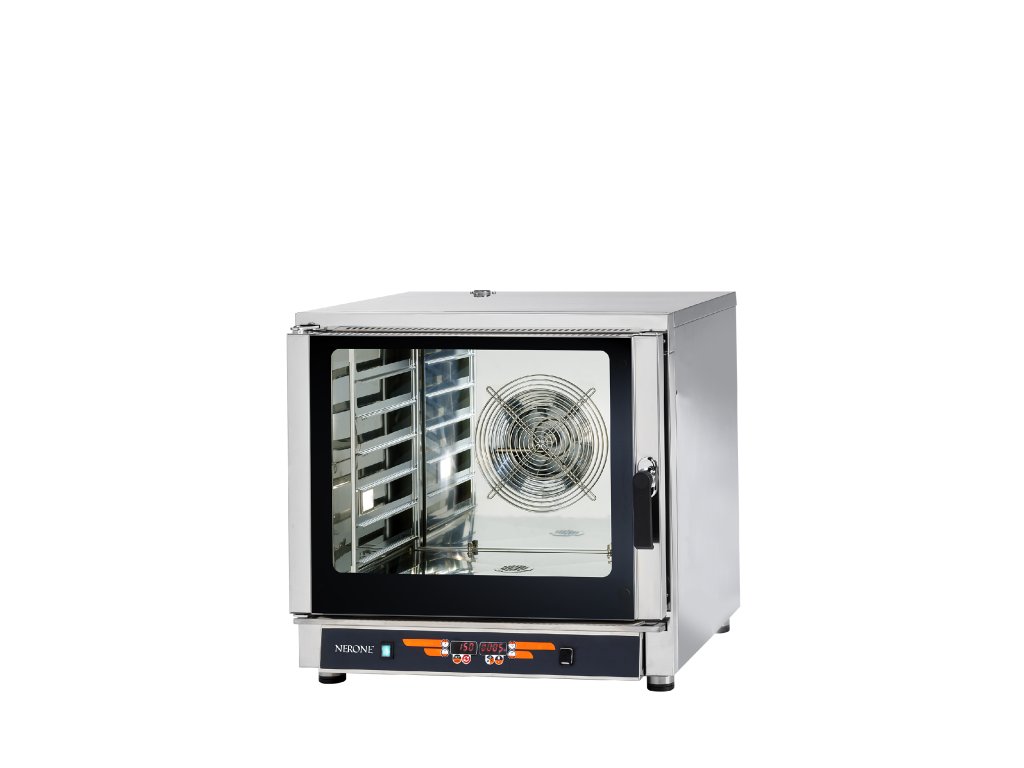 Digitálna konvekčná (teplovzdušná) pec s privlhčovaním a reguláciou pary 10 až 100 %. Vďaka pare nedochádza k vysúšaniu produktov, je zachovaná ich šťavnatosť. Pri pečení pečiva má para vplyv na rovnomernú štruktúru a následne jeho kvalitu. V sérii NORDline Nerone MID je počet roštov (600 x 400 mm) alebo GN 1/1 daný číslom v názve za "MID". Rošty ani GN nie sú súčasťou.