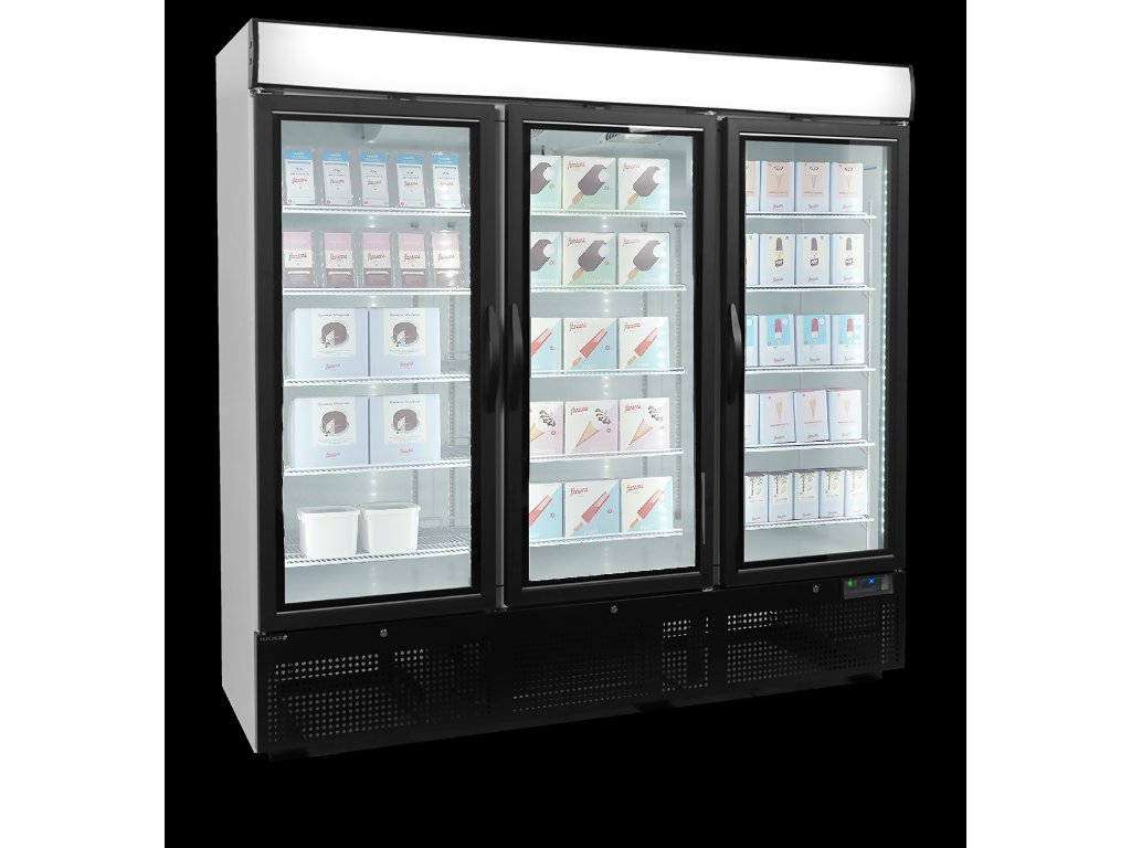 Množstvo mraziacich skríň NF sa dodáva s 1, 2 alebo 3 krídlovými dverami a ponúka pôsobivý úložný priestor. Osvetlený reklamný panel upúta pozornosť zákazníkov, zatiaľ čo samozatváracie vyhrievané presklené dvere, nastaviteľné police a vnútorné vertikálne LED osvetlenie zaisťujú, že obsah vyzerá čo najlepšie. Mraziaca skriňa má účinné ventilované chladenie a automatické odmrazovanie. Police sú ľahko nastaviteľné.