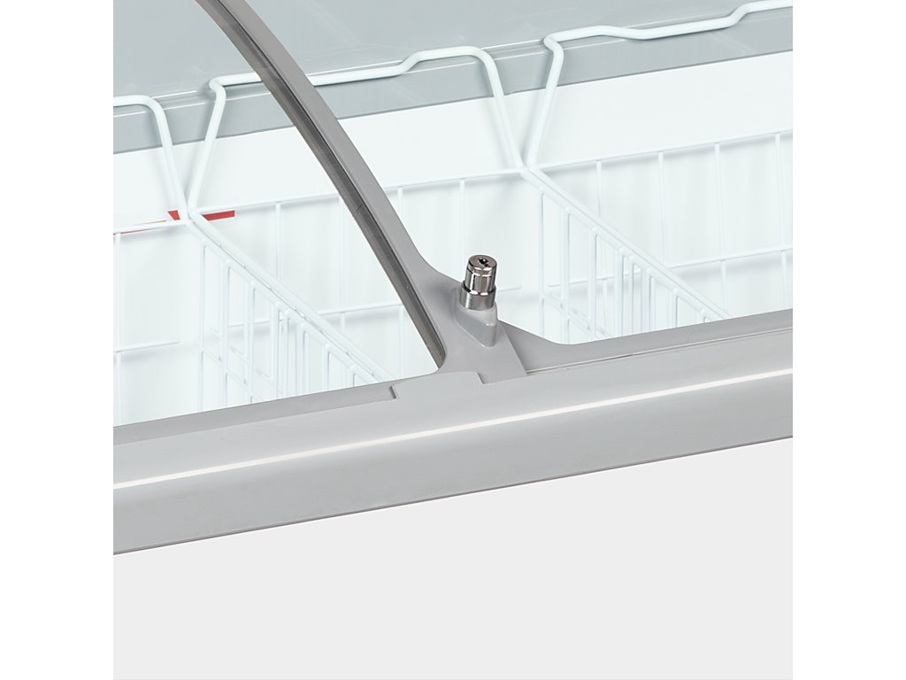 oblé posuvné veká so zámkom|naklonená výstavná plocha pre lepšiu prezentáciu|kompletná súprava košov|ideálne na reklamné polepy|digitálny teplomer|kolieska s brzdou|klimatická trieda 5 - vysoký výkon aj v teplom prostredí