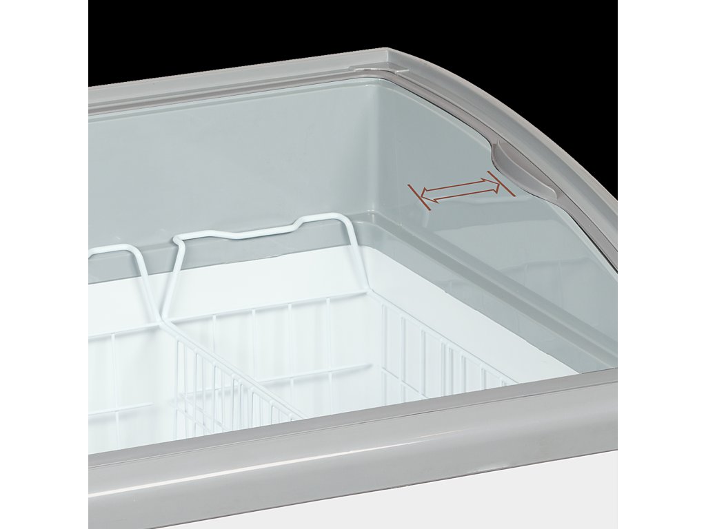 naklonená výstavná plocha pre lepšiu prezentáciu|oblé posuvné veká so zámkom|kompletná súprava košov|ideálne na reklamné polepy|digitálny teplomer|kolieska s brzdou|klimatická trieda 5 - vysoký výkon aj v teplom prostredí