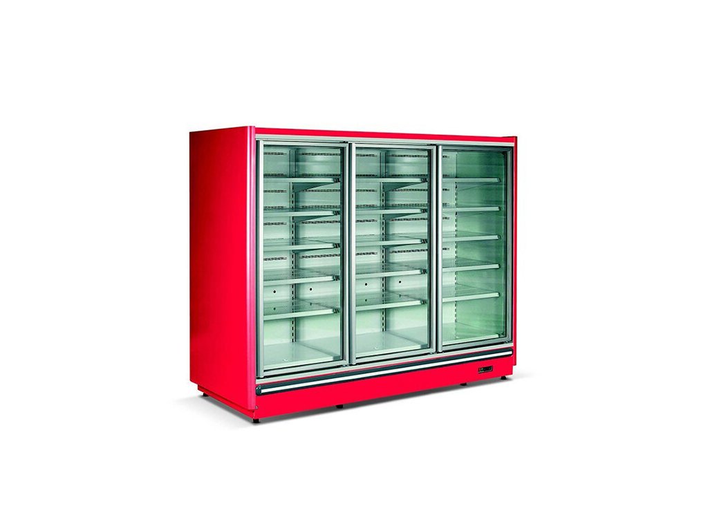 ventilované chladenie|bez vstavaného agregátu|nástrekový ventil|5 chladených perforovaných nastaviteľných políc|chladená výstavná plocha|vertikálne LED osvetlenie|plné bočnice|krídlové dvere|vyhrievaný rám|cenovkové lišty|digitálny termostat