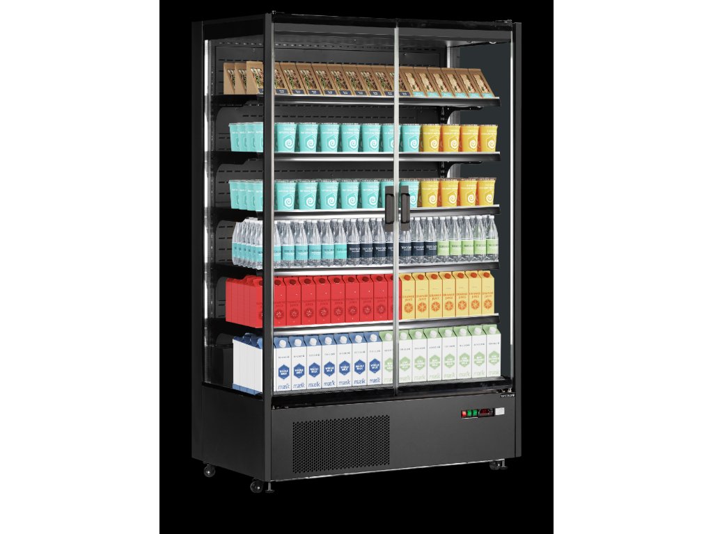 bezrámové presklenené dvere na skvelú viditeľnosť výrobkov|nízka spotreba energie|čierne vnútro a vonkajšok|nastaviteľné police s možnosťou náklonu|LED osvetlenie pod každou policou|ventilované chladenie pre rýchle a rovnomerné zníženie teploty|digitálny termostat a zobrazenie teploty|bočné steny štandardne presklené|kolieska a nastaviteľné nožičky|transparentné cenovkové lišty o výške 33 mm