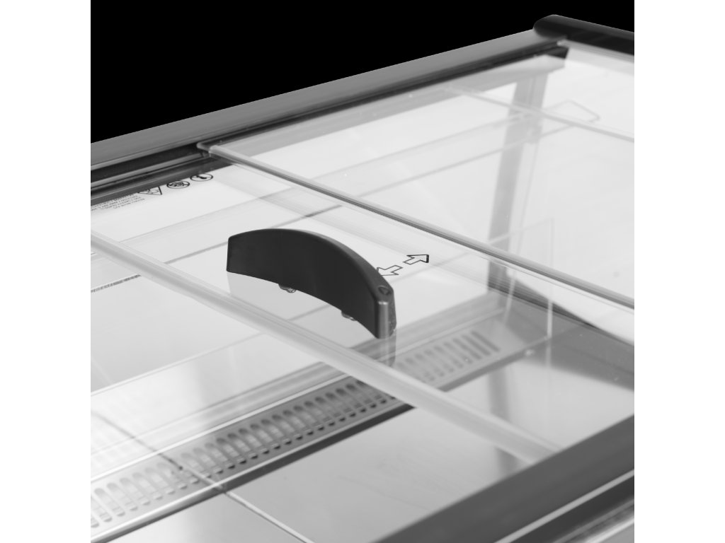 posuvné presklené veká|bočné steny z plexiskla pre skvelú viditeľnosť výrobkov|veľký úložný priestor|optimalizované prúdenie vzduchu pre stabilnú teplotu|pevné kolieska pre mobilitu|ochrana proti nárazu na 4 stranách