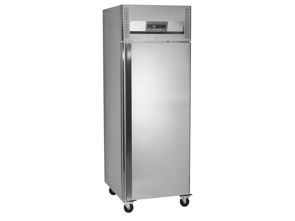 Rad RF mraziacich skríň s 1 alebo 2 plnými dverami je určený pre profesionálne kuchyne a disponuje nastaviteľnými policami. Mraziaca skriňa je vyrobená z vysoko kvalitnej nerezovej ocele SS304 vhodnej pre gastronómiu a má odolné kolieska pre ľahké premiestňovanie, čo sa hodí aj pri upratovaní. Ventilované chladenie zaisťuje čerstvosť obsahu a teplotu je možné nastaviť na digitálnom termostate. K dispozícii je tiež rad RK s rozmermi GN.