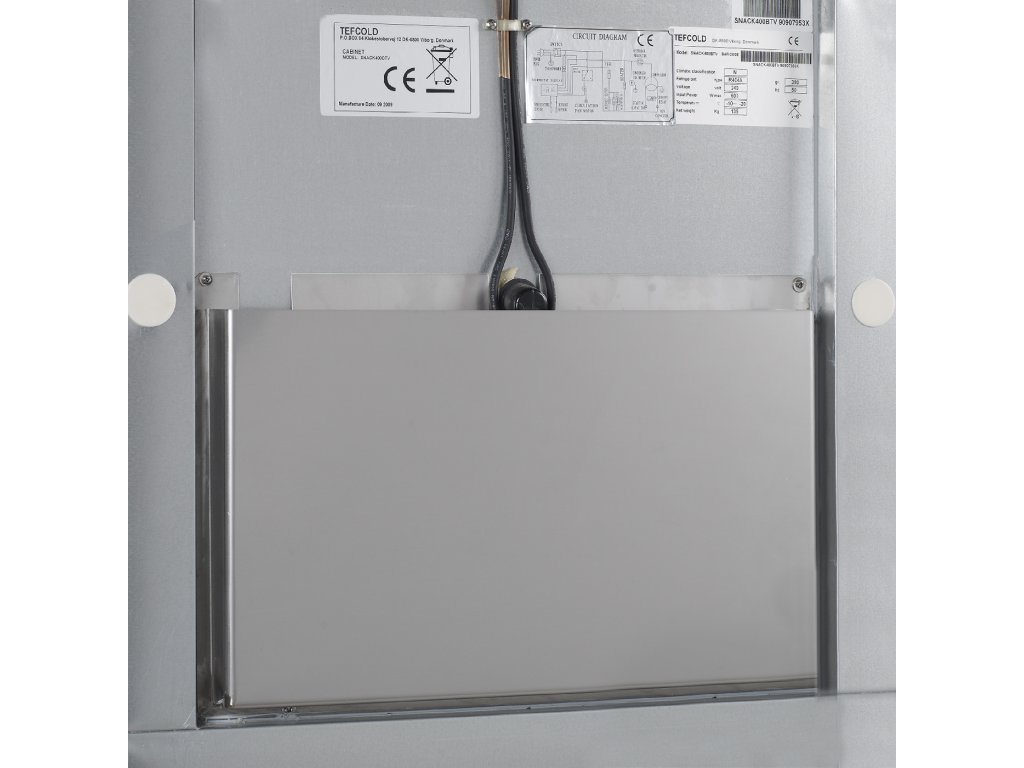plné dvere, možno zmeniť otváranie|nehrdzavejúca oceľ|ventilované chladenie|zámok|samozatváracie dvere so 105° zarážkou|nastaviteľné police|odolné kolieska
