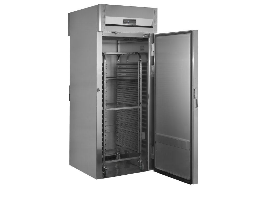 vonkajšok a vnútro z nehrdzavejúcej ocele|prístup spredu a zozadu|vhodné pre vozíky s 20 podnosmi (nie sú súčasťou)|ventilované chladenie|digitálny termostat a zobrazenie teploty|automatické odmrazovanie|klimatická trieda 5 - vysoký výkon aj v teplom prostredí