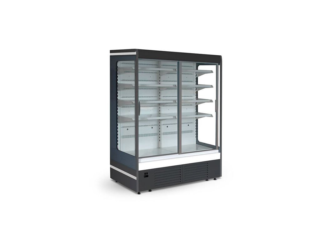 ventilované chladenie|vstavaný agregát|posuvné dvere|digitálny termostat|automatické odmrazovanie|automatické odparovanie kondenzátu|strieborná sieťotlač bočného skla|5 chladených nastaviteľných políc|chladená výstavná plocha|horné LED osvetlenie vitríny - farba biela studená|plexi zábrana police - 2 horné rady