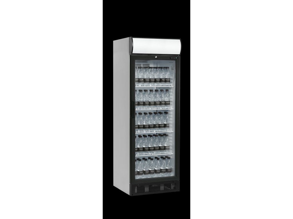 reklamný panel podsvietený LED|možno zmeniť otváranie dverí|nastaviteľné police|nastaviteľné nožičky|vnútorné LED osvetlenie|presklené krídlové dvere s hliníkovým rámom|chladenie s pomocným ventilátorom