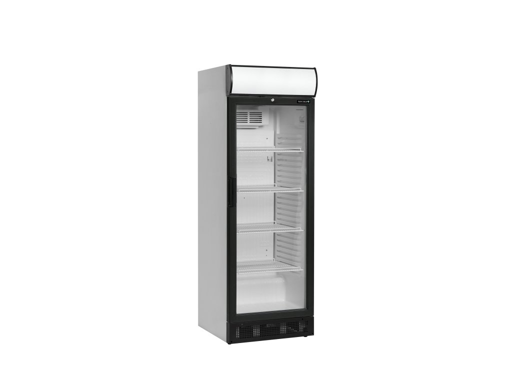 Rad chladiacich skríň s presklenými dverami SCU ponúka veľký výstavný a úložný priestor. Dodáva sa v niekoľkých veľkostiach, so strieškou alebo bez nej. Ide o bielu skriňu s čiernymi obojstrannými presklenými dverami s hliníkovým rámom, nastaviteľnými policami a interiérovým LED osvetlením na optimálnu prezentáciu výrobkov. Chladiaci systém s ventilátorom zabezpečuje rovnomerné chladenie celej skrine.