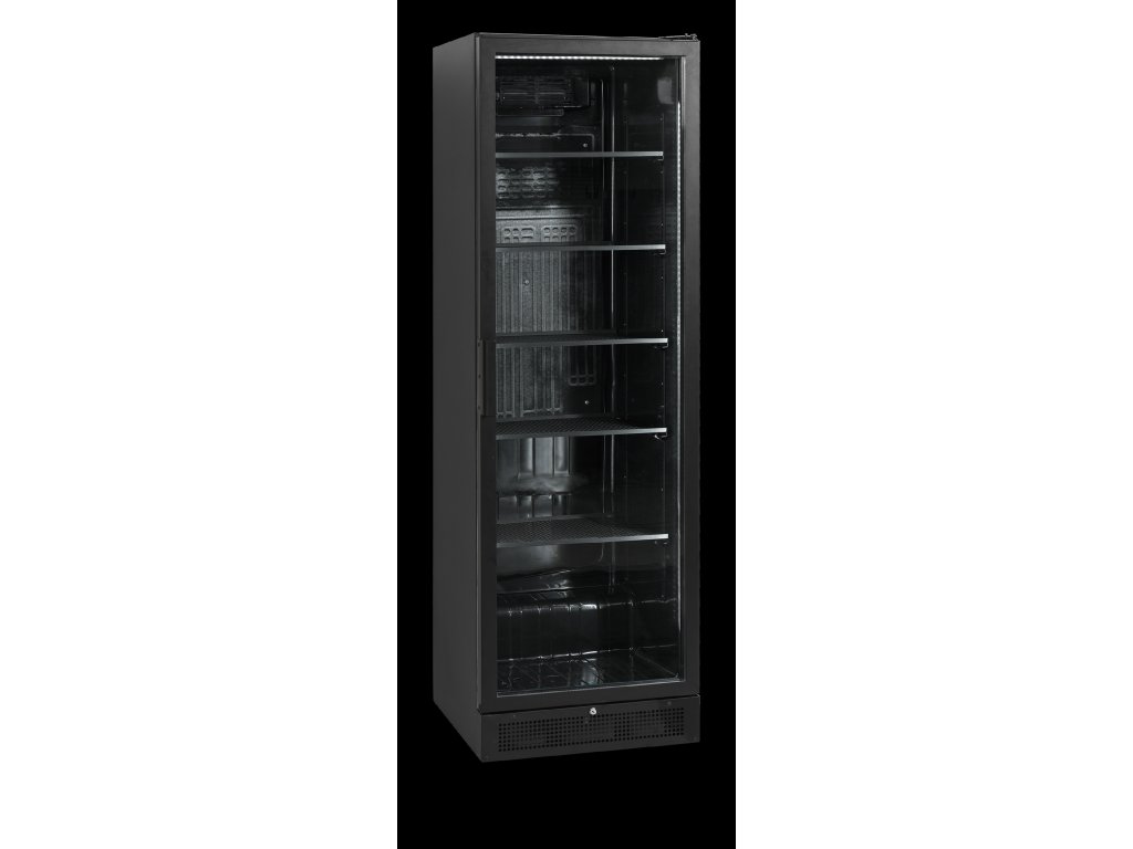 Rad chladiacich skríň s presklenými dverami SCU1425 posúva cenovo dostupné výstavné chladiace skrine na novú úroveň kvality. Čierny exteriér a interiér mu dodávajú elegantný nádych. Chladiaca skriňa má v plnej výške obojstranné presklené dvere s hliníkovým rámom, nastaviteľné police a interiérové LED osvetlenie na optimálnu prezentáciu výrobkov. Chladiaci systém s ventilátorom zabezpečuje rovnomerné chladenie celej skrine. K dispozícii je aj model s bezrámovými presklenými dverami.