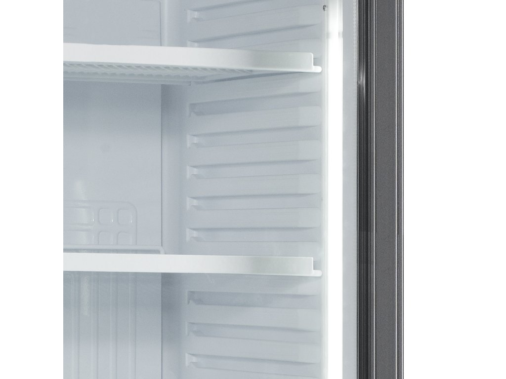 presklené krídlové dvere|svetelný reklamný panel|možno zmeniť otváranie dverí|nastaviteľné police|nastaviteľné nožičky|chladenie s pomocným ventilátorom|zámok