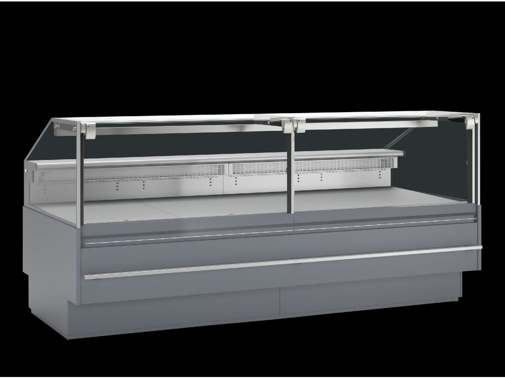 skvelá viditeľnosť produktov|výstavná plocha s hĺbkou 900 mm z nehrdzavejúcej ocele|predné sklo, ktoré sa nezahmlieva|čelné sklo možno zdvihnúť na jednoduché čistenie|zadné police z nehrdzavejúcej ocele|ventilované chladenie|teplotná trieda 3M1|horné LED osvetlenie|lišty proti nárazu z nehrdzavejúcej ocele|2 × 220-240 V zásuvky vzadu|spojovacia sada ako voliteľné príslušenstvo
