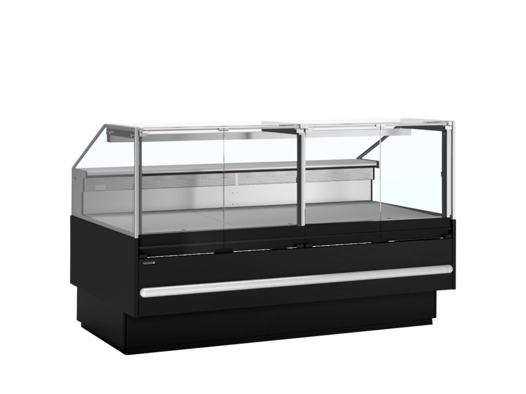 čierna povrchová úprava|skvelá viditeľnosť produktov|výstavná plocha s hĺbkou 825 mm z nehrdzavejúcej ocele|predné sklo, ktoré sa nezahmlieva|krídlové otváranie čelného skla na jednoduché čistenie|zadné police z nehrdzavejúcej ocele|ventilované chladenie|teplotná trieda 3M1|horné LED osvetlenie|2 × 220-240 V zásuvky vzadu|spojovacia sada ako voliteľné príslušenstvo|narážacie lišty