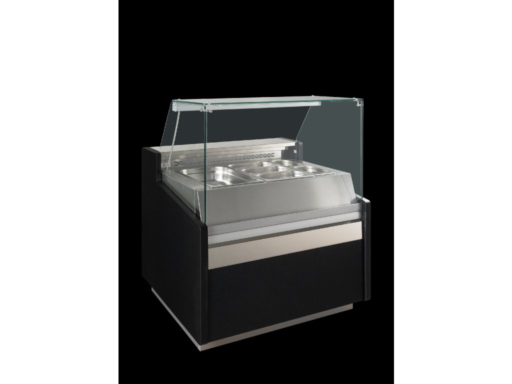 skvelá viditeľnosť produktov|presklené krytie na ochranu potravin|predné presklené krídlové dvere (na vyžiadanie)|možno vložiť GN1/1 (nie sú súčasťou)|ľahko prístupný úložný priestor|čierny vonkajšok|ventilované chladenie|automatické odmrazovanie|vnútorné LED osvetlenie