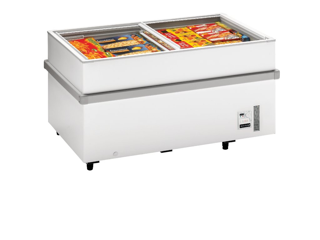 určené na inštaláciu ostrovov|vynikajúca viditeľnosť výrobkov|posuvné presklené veká|statické chladenie|narážacie lišty|nastaviteľné nohy