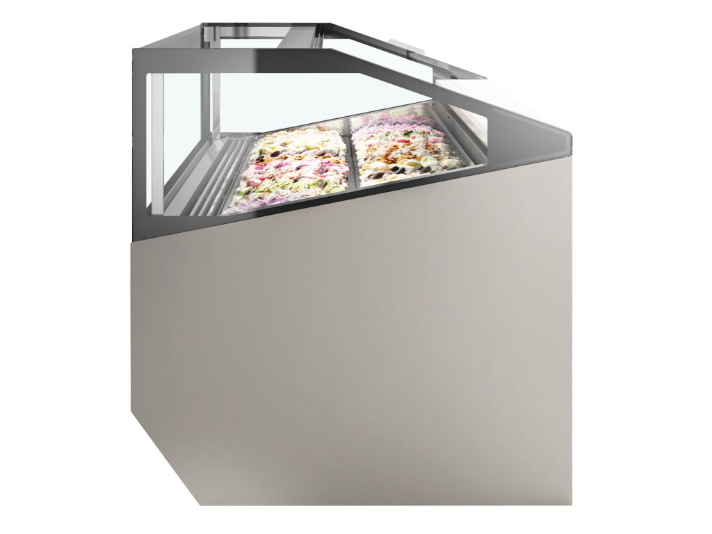 Distribútor má čisté moderné línie a vnútorné LED osvetlenie, aby čo najlepšie prezentoval vašu zmrzlinu a je naklonený smerom k zákazníkovi (pod uhlom 11°), aby umožnil lepšiu viditeľnosť výrobkov. Jedinečný systém chladenia s dvojitým prúdením vzduchu umožňuje samostatné prúdenie nad každým radom zmrzlinových vaničiek, čo umožňuje účinnejšie chladenie a zároveň znižuje teplotné rozdiely. Predné, horné a bočné sklá sú vyhrievané, aby sa znížila možnosť kondenzácie. Predné sklo je výklopné pre jednoduchšiu údržbu.