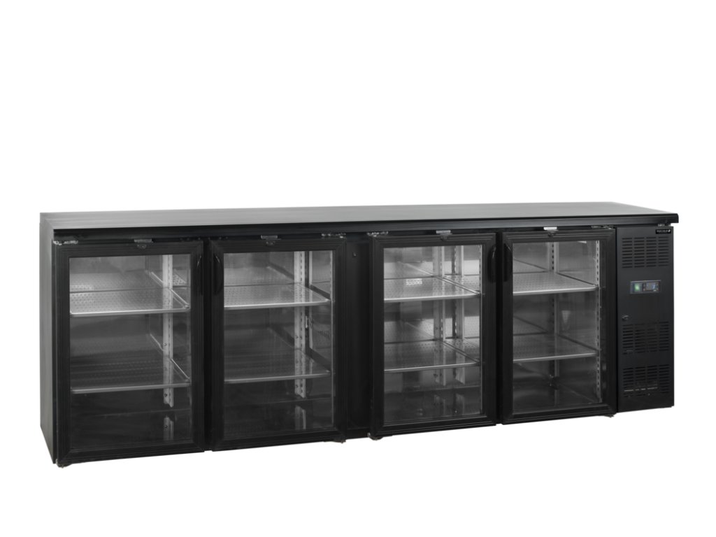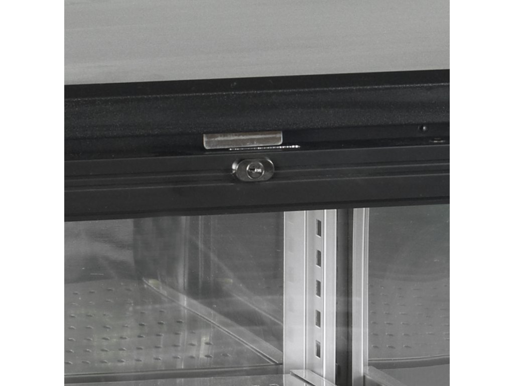 odolné zariadenie do náročnej prevádzky, samozatváracie presklené dvere, vnútro z nehrdzavejúcej ocele s lesklým efektom, nastaviteľné police z nehrdzavejúcej ocele SS304, nastaviteľné nožičky, ventilované chladenie