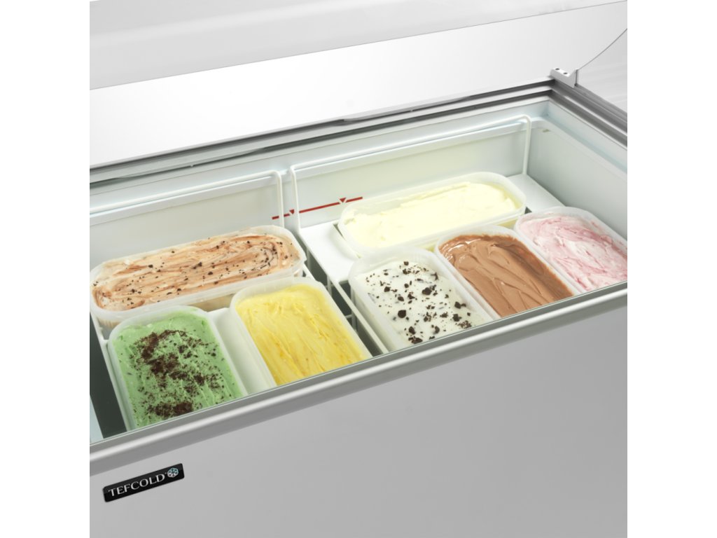 TEFCOLD IC-SO je náš cenovo dostupný distribútor zmrzliny Jedná sa o kvalitný distribútor kopčekovej zmrzliny za férovú cenu. Je perfektné, ak chcete do svojho podnikania pridať predaj kopčekovej zmrzliny a myslíte pritom na rozpočet. Tento model je vo verzii s oblými posuvnými presklenými vekami namiesto plochých. Náklon výstavnej plochy distribútora poskytuje lepšiu prezentáciu obsahu a robí ju ešte ideálnejšou pre vystavenie kopčekovej zmrzliny. Model je stále kompaktný a dodáva sa v rôznych veľkostiach, takže je ideálny ako pre menšie obchody a lahôdky s obmedzeným priestorom, čerpacie stanice a supermarkety. Pevné kolieska umožňujú ľahšiu manipuláciu v obchode. Je ideálny pre reklamný polep. Všetky veľkosti tohto radu sú optimalizované pre koše, ktoré pojmú 5 litrové plastové vane. Koše sú voliteľné. Typ a počet je nutné objednať. Upozorňujeme, že koše sú vhodné pre 5l gastronádoby - nádoby Napoli sa do nich nezmestia.