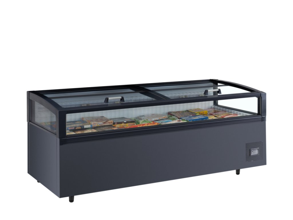 Tento kombinovaný chladiaci/mraziaci ostrov má moderný dizajn s presklenými stenami v hornej časti troch strán, ako aj s dvoma presklenými vekami pre vynikajúcu viditeľnosť výrobkov. Posuvné veká sa otvárajú spredu dozadu, čo umožňuje prístup k obom stranám jednotky súčasne. Skriňa ďalej ponúka skvelú prezentáciu výrobkov vďaka LED osvetleniu a nastaviteľnému falošnému dnu, ktoré umožňuje, aby mraziaca/chladiaca skriňa vždy vyzerala plná.