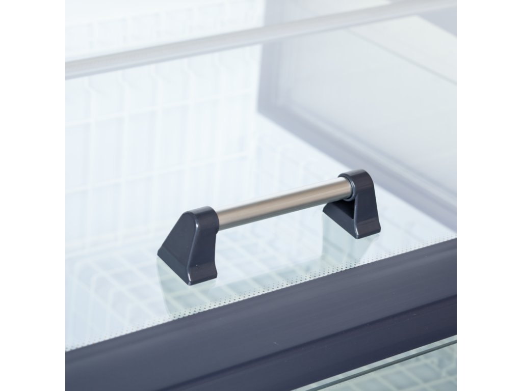 vynikajúca viditeľnosť výrobkov, jednoduché prepínanie medzi chladením a mrazením, energeticky úsporný invertorový kompresor, ľahký prístup k tovaru vďaka posuvným vekom, trojité izolačné sklo po všetkých stranách, vnútorné LED osvetlenie, digitálny termostat a zobrazenie teploty, nastaviteľná falošná základňa
