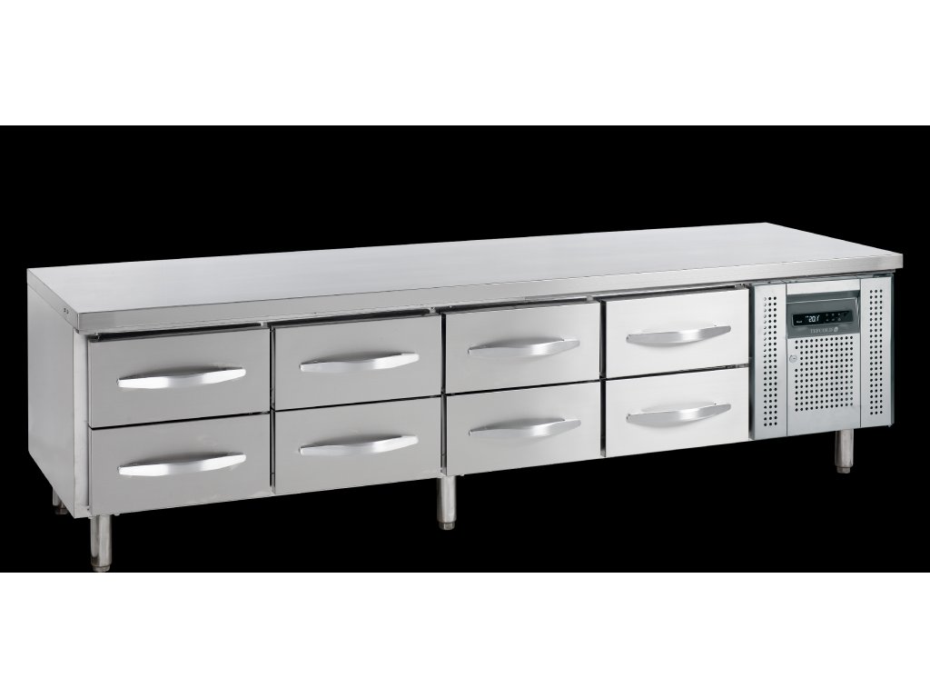 Rad chladiacich podstavieb so zásuvkami UC je vyrobený pre profesionálne kuchyne a má zásuvky s rozmermi gastronádob GN1/1. Chladiace skrine sú vyrobené z nehrdzavejúcej ocele SS304 a sú k dispozícii so 4, 6 alebo 8 zásuvkami. Systém ventilovaného chladenia zabezpečuje rýchle zníženie teploty a rovnomernú teplotu. Nastavenie teploty možno upraviť pomocou elektronického termostatu. K dispozícii sú aj podobné modely s dverami namiesto zásuviek.