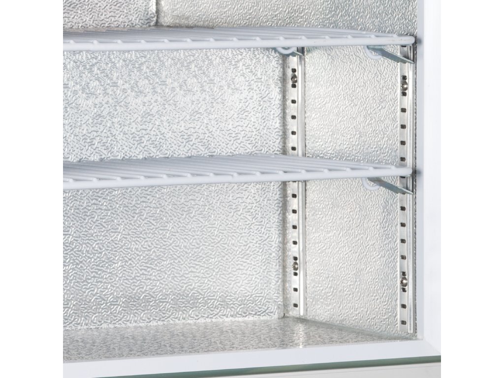statické chladenie|samozatváracie presklené dvere|nastaviteľné police|nastaviteľné nožičky|vnútorné LED osvetlenie s vypínačom|vyhrievané sklo zabraňujúce kondenzácii|vymeniteľné tesnenie dverí|zámok
